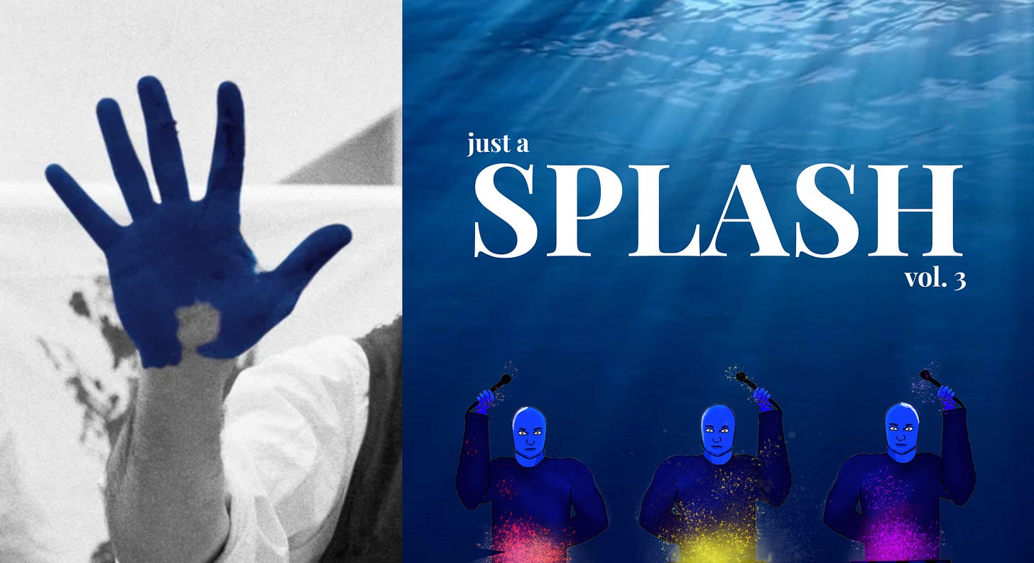 You can hold the ocean in a hurricane glass and taste the sky. Stain your tongue, spill a little on your best white shirt. Prove, for a moment, that something immaterial passed through you and left a trace. Pour it, pee it, patent it, deride it all you want - blue answers to no one.